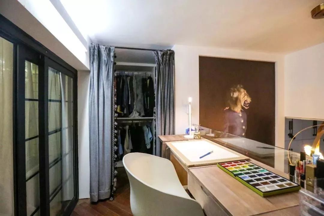 衣帽间就是二楼帘子后面的空间