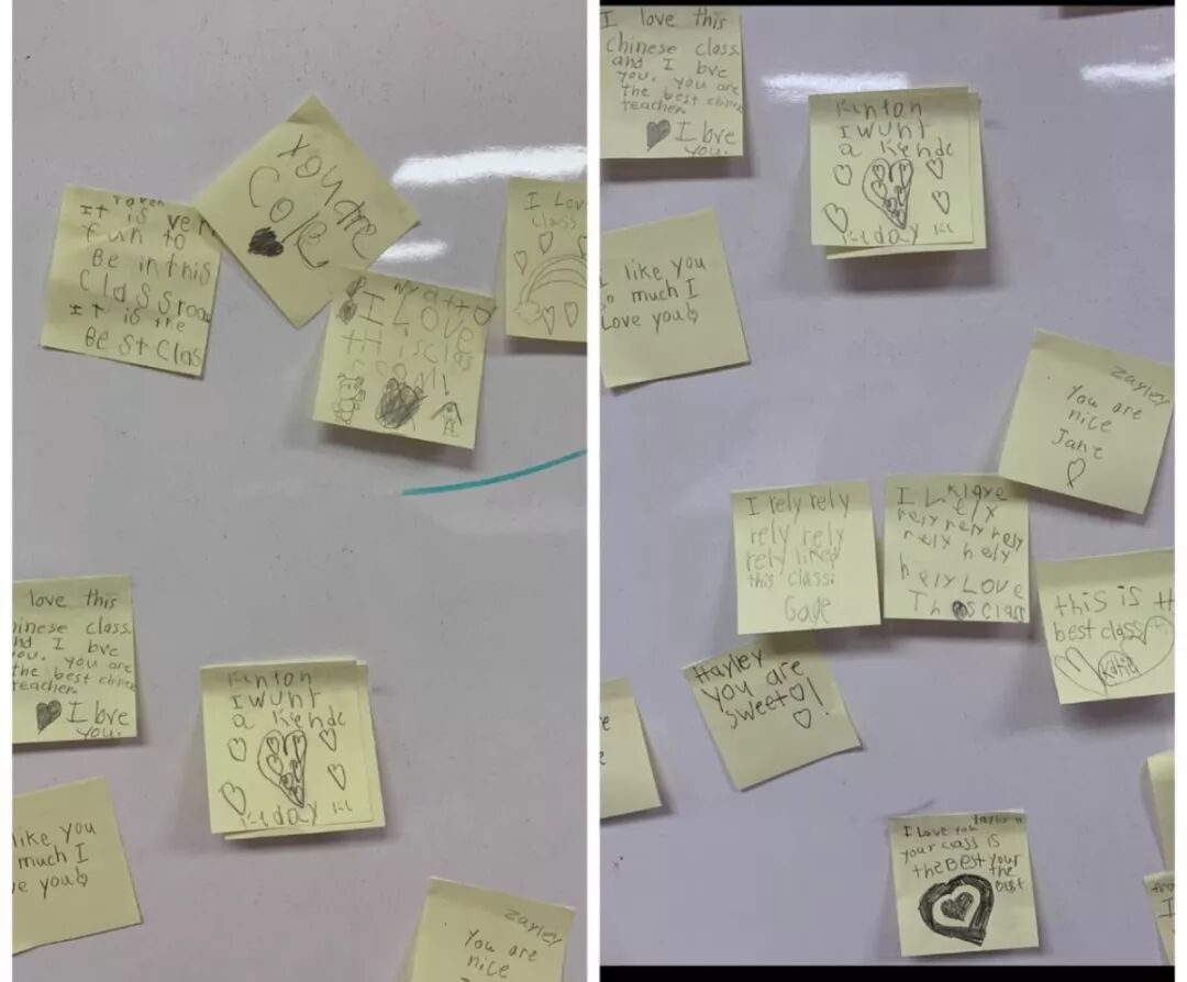 "I love this Chinese Class, and I like you. You are the best Chinese teacher. Love you!"