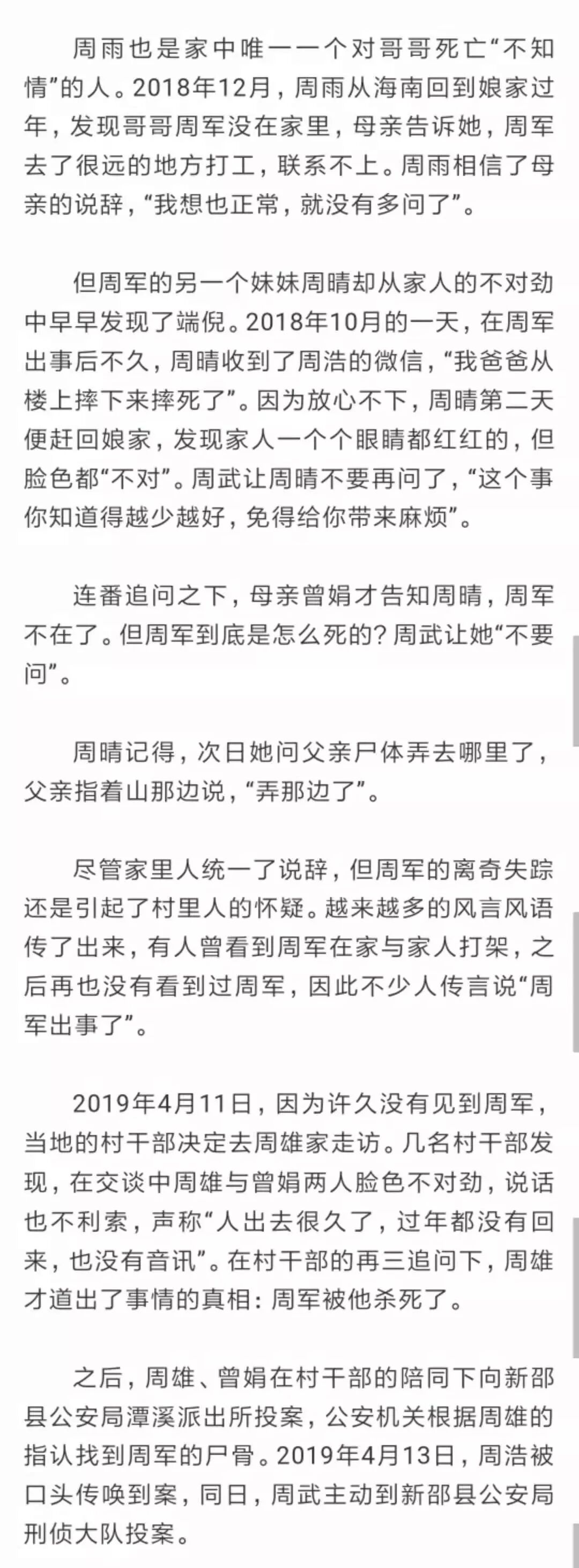 妹妹周雨称,与哥哥性格不合,基本上没有什么交流,以前也很少在家里过年。