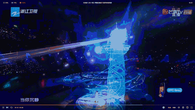 晚会多个节目运用了AR技术+跟踪技术,表演嘉宾走到哪,电视观众就能看到现场实景演出与站内精彩内容结合。运用BlackTrax红外追踪捕捉整个舞台的空间,然后再将斯坦尼康的位置信息反送到实时渲染引擎,最后合成AR追踪。除此之外,晚会还在邓紫棋、Next等节目中用到直播晚会静态激光技术,以往只能在电影大片等需要后期剪辑的激光场景。