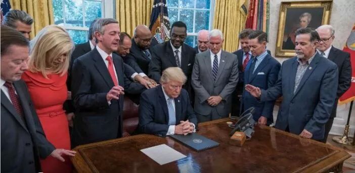 “自由派本应大力支持唐纳德·特朗普总统的,他有三任妻子并且许多所作所为并不像一个基督徒,甚至没有达到白人福音派宣称的基督徒的最低行为准则。但是白人福音派对唐纳德·特朗普的支持仍然高达73%,2016年大选中有超过80%的白人福音派选民投票支持他。”