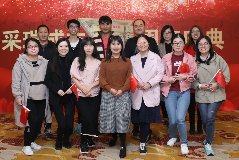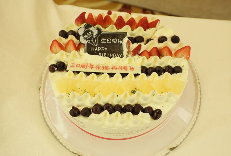 当特别定制的采瑞20周年蛋糕推入会场,大家齐唱祝你生日快乐!王林元老师、张建军老师切蛋糕,采瑞全体员工送上祝福!一起合拍全家福,纪念这难忘的一瞬间!