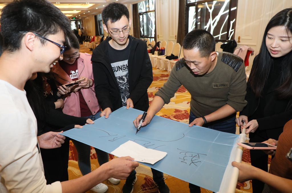 会后,公司组织了团建活动,一共分成4组,分别是“森林队”、“冠军队”、“红星队”、“猛虎队”。各队在团建老师的带领下,制作队旗,高喊自己的队呼,势必要争比赛第一。