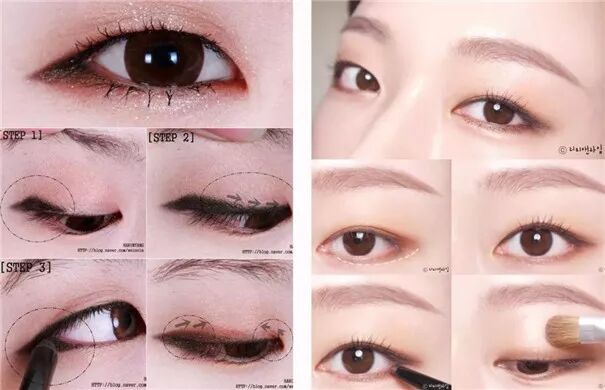 2.自然的眼线一说到单眼皮、内双的眼线,大家想到的一定是粗眼线,否则你想眼睛一睁开不就没有了吗,所以大家就拼命把眼线画粗,想让眼睛看起来更大。其实这样是错误的,粗眼线日常不适用,而且容易有廉价感。下图很明显右图比左图顺眼得多,非常清爽,符合现在的审美。