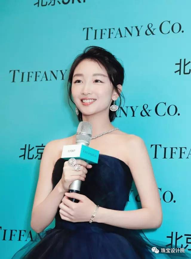周冬雨出Tiffany&Co(蒂芙尼)活动,深蓝色的礼服,佩戴着Tiffany&Co六爪镶嵌钻戒,钻石D色,IF净度,重约5.88克拉,这枚钻戒全球仅限量130枚。