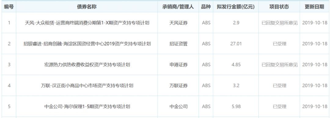 2019年10月21日01上交所ABS项目审批情况: