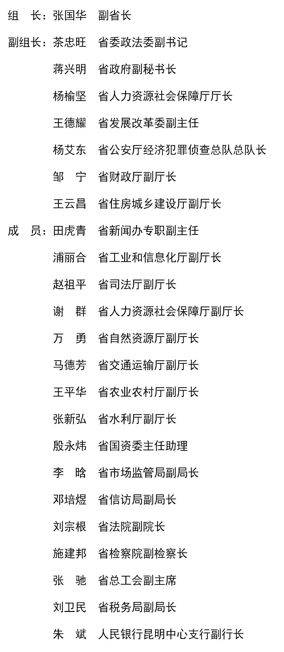 云政办函〔2019〕129号云南省人民政府办公厅关于成立云南省根治拖欠农民工工资工作领导小组的通知