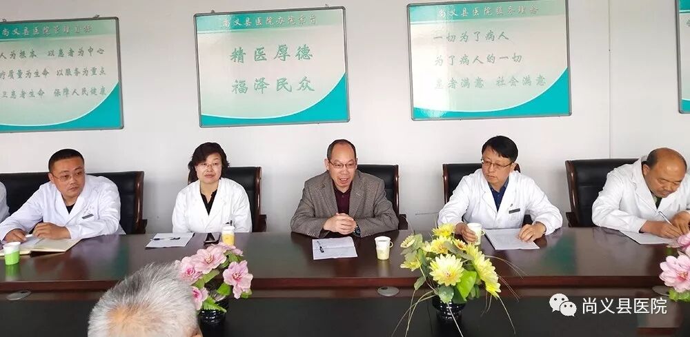 尚义县医院各科室主任纷纷发言,对一年来帮扶县医院的扶贫专家表示崇高的敬意和衷心感谢。对口支援专家也表示将认真履责、发挥作用、按要求高标准完成对口帮扶工作。