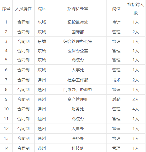 北京中医药大学东直门医院2019年10月合同制行政岗位人员招聘公告根据我院业务发展需要,