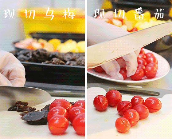 这里都是下单即切即装,师傅手速很快!手起刀落,唰唰唰唰几下,相机都跟不上节奏了,然后再飞速利落切好装盘