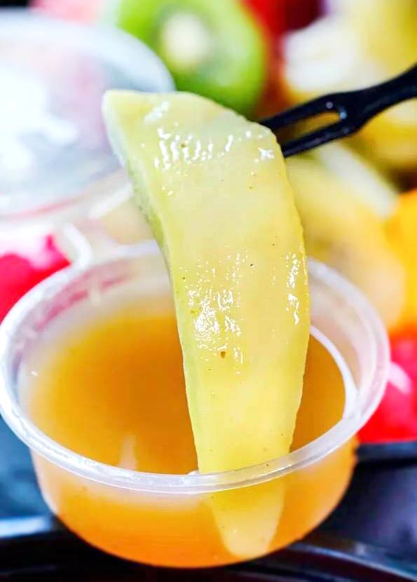 为了保持水果的新鲜度,水果都是下单后现场制作的,去完皮后还会细心的去掉一些影响口感的地方,从拿水果到称重、切果,店员一手包办,简直就是“懒癌”福音~