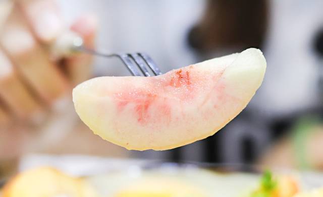 甘草水蜜桃散发着甜美的气息,甜味愈发显现,霎时间收买人心,蘸上酸梅汁,酸甜可口,小觅觅可以吃一斤!和软桃想比,清脆可口、多汁香甜