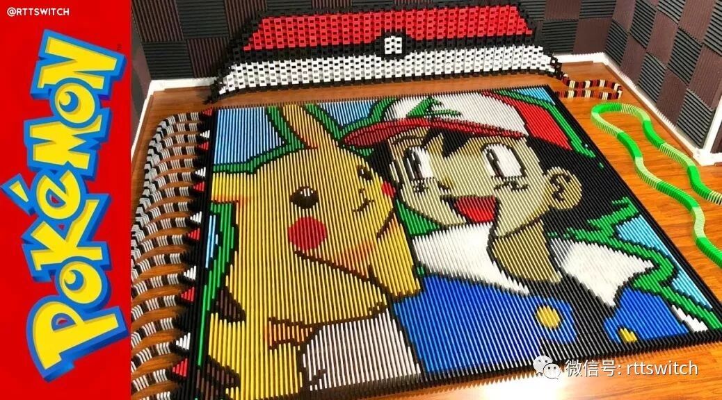 TheDominoKing在最新完成了一个《塞尔达传说梦见岛》的多米诺骨牌之后并没有闲着,又带来了一个全新的作品,本次作品主要向《宝可梦》游戏致敬,我们可以看到智爷和皮卡丘的出现。