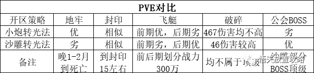 备注:1.沙雕地牢能力一般,需要光法才能到死亡。所以时间晚1-2俩月(针对2,3类玩家)2.过封印小炮魔兽龙或凤,神器战士增伤,需要艾米丽,控制;沙雕需要魔兽鹿,减伤甲对同伴无过多要求。3.当战力250-300万以后,光法不再是通飞艇钥匙了,需要整个队伍恢复性。这个时候魔兽鹿的沙雕+光法,优于,魔兽龙凤的小炮+光法。4.4、6破碎打固定位置沙雕输出较强,小炮破碎4无法暴击,6、7站不住(需要高级暗牧支撑,勉强及格)5.公会BOSS大部分因为前排只有一个,小炮输出一般,而只要BOSS打制定位置的沙雕输出均为顶级6.堡垒先知副产品作用均只能帮小炮过封印,而幽牧是可以进最后PVP名单的,高下立判。7.无暗牧PVP胜率没做实际测评,如果全部上满小弟,应该出入不大。后期暗牧成型(速度比炮妹快后)小炮天然克星可不是吹的。8.小炮带路期间龙是最佳PVP魔兽,到了后期阵容,几乎使用龙较少(炸弹和假救赎应该都是凤凰更加,其余都是鹿更加) 综上分析得知:开局小炮+光法会克制一段时间沙雕+光法,但是随着暗牧出来,小炮强度会快速下降,而沙雕强度反而上升(小炮、沙雕、暗牧三者互克,而单暗牧是顶级阵容必备)所以如果对于氪金程度中高的玩家而言,短暂的暗牧真空期也就是3-5个月,而V6以下玩家而言可能是接近一年,甚至更久,为了过程体验,V6以下玩家小炮开局体验感更好。 开局其他选择:开局直接光暗也不失为3、4档玩家一种选择,1档玩家必须放弃,2档玩家得看清自己肤色。另外克图强度剧增,E5克图能到封印15,所以深渊开局也是一个选择,但不建议。克图在后期始终是上不了台面的英雄(不要被克图秒杀森林之光的视频所欺骗,在全E5阵容下,克图伤害中庸,不免控且龟速,只耐揍被动输出的特性和沙雕比起来至少差2个等级)但是前期带路还是没问题的,不是深渊余孽的慎入!
