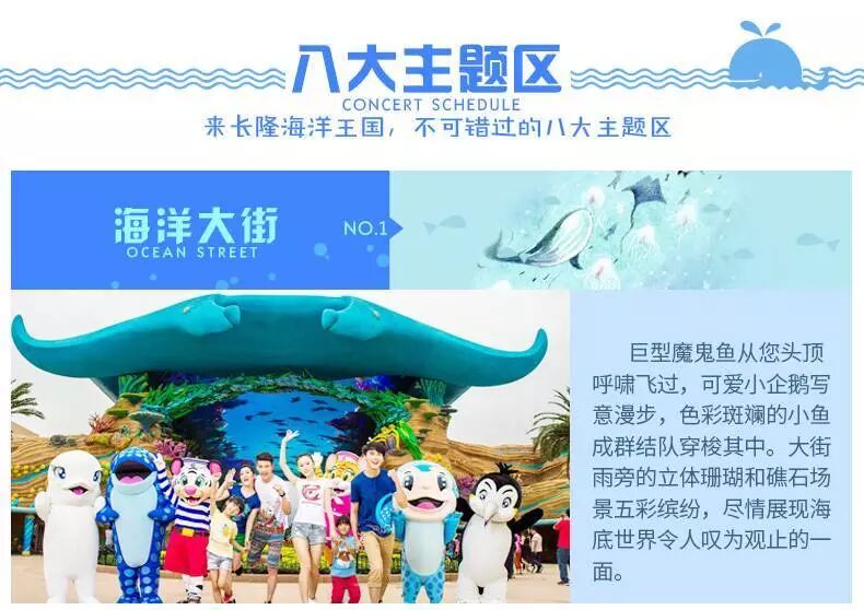 1、大型海洋主题乐园,汇聚专业机动游戏、珍稀动物展馆、大型剧场表演、餐饮、购物等综合娱乐体验。