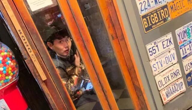 栾云平PO出的这张照片和孟鹤堂自己PO出的照片画风完全不同。只见孟鹤堂似乎坐在一个小酒吧的门内,正在打电话的他透过玻璃往外望,看到给自己照相的人之后脸上显得有些错愕,表情十分搞笑。