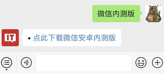 哦对了,差点忘了。想升级最新版微信的挨踢友,直接在【IT之家】聊天对话框中输入【微信内测版】就行了。