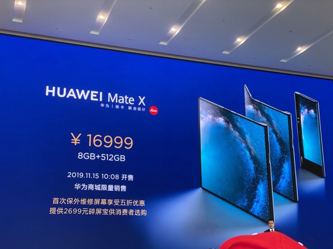 华为在昨天下午举行华为5G终端与全场景新品发布会上,正式宣布了华为Mate 30/Pro 5G、华为Mate X 5G折叠屏手机。备受关注的华为Mate X 5G手机国行售价16999元,8GB+512GB存储,将在11月15日上午10点08分开始,华为商城限量销售。另外首次保外维修屏幕享受5折优惠,提供2699元碎屏宝供消费者选购。