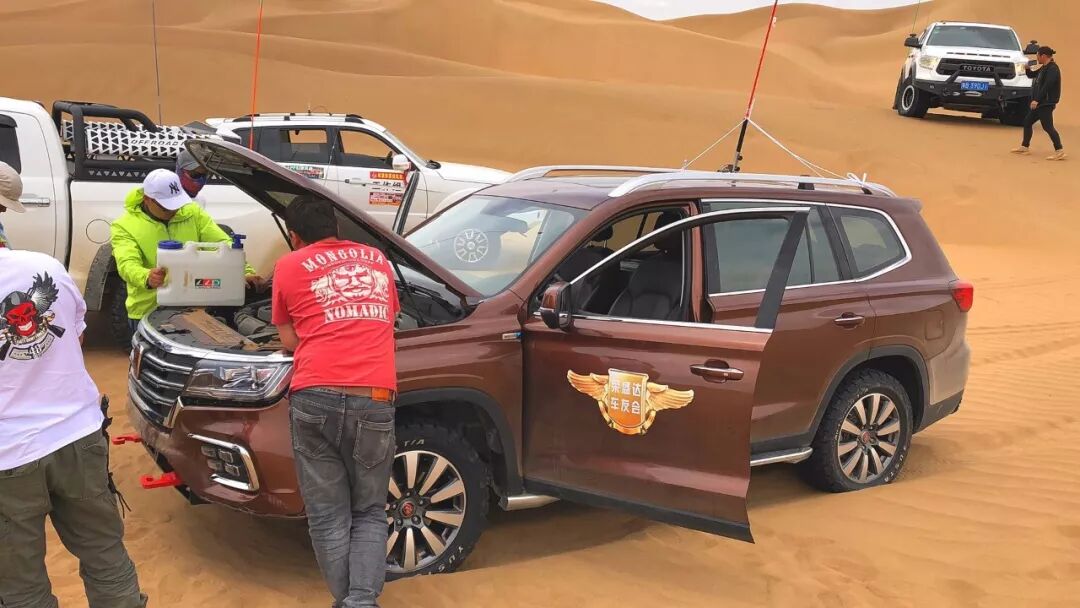 激情丝毫没有减少,热情澎湃再次向前进军。不久领队旅长在对讲机里听到,荣威车又有问题加不起油,这可真是一波未平一波又起呀~经过检查发现水温过高开锅了,附水箱的水全喷射完了。加完水后,车辆一直走走停停,水温反复高了起来,又发现电子风扇停止工作。所以导致水温一直过高,排查结果是节温器坏了,不给电脑信号,所以风扇不转。