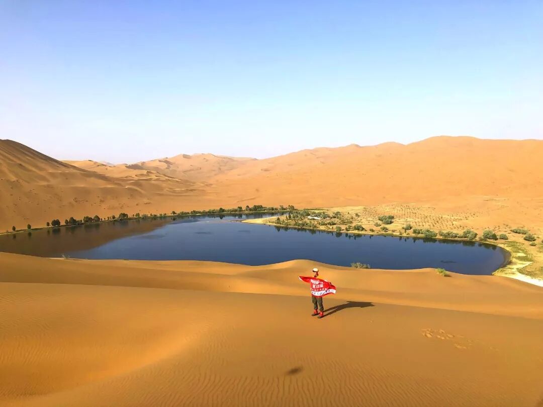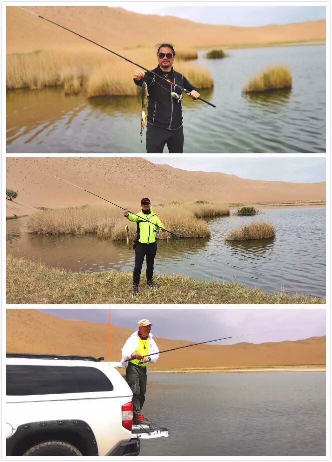 直线距离20公里。巴丹吉林沙漠唯一的淡水湖—额肯吉林,老沈和二炮、旅长开启了钓鱼比赛。