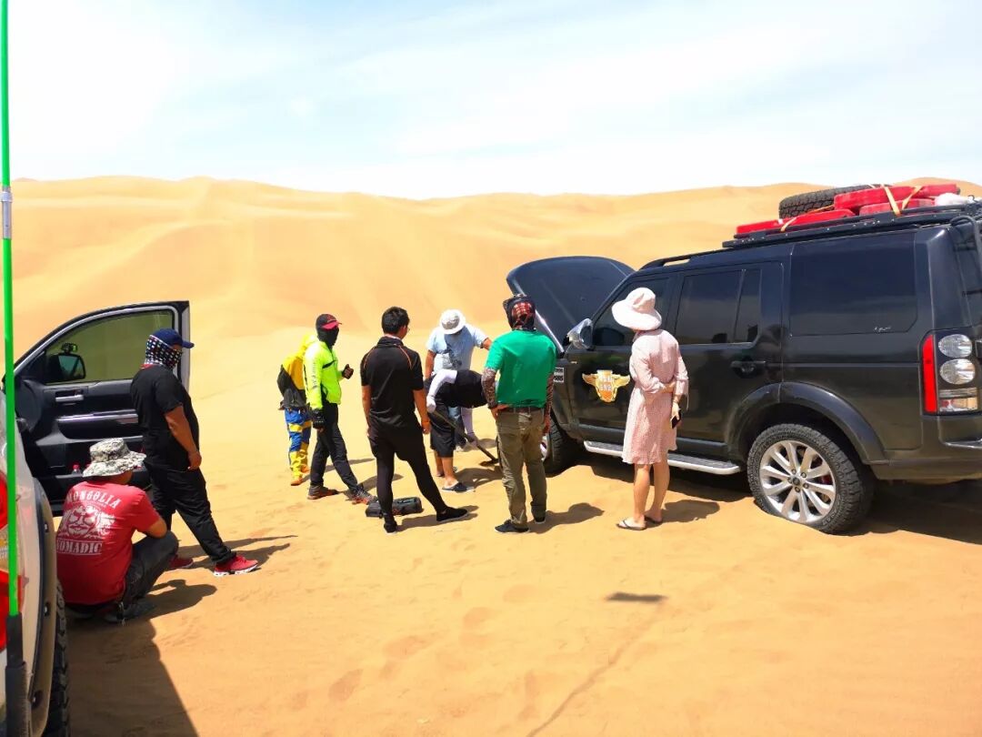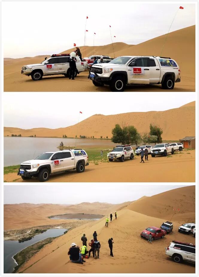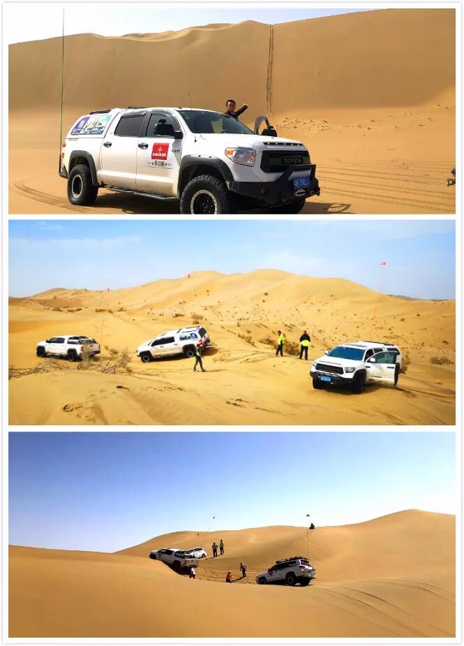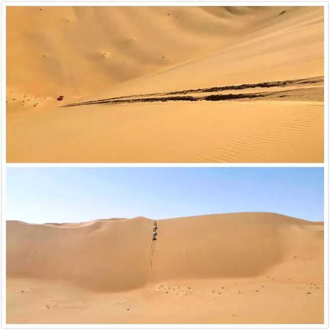 为了防止其他突发事件的发生,我们的对讲机紧密交流着。一路感受沙漠穿越的乐趣,驾驶者和乘客倍感喜悦,穿梭自如的越过一道道沙坡。