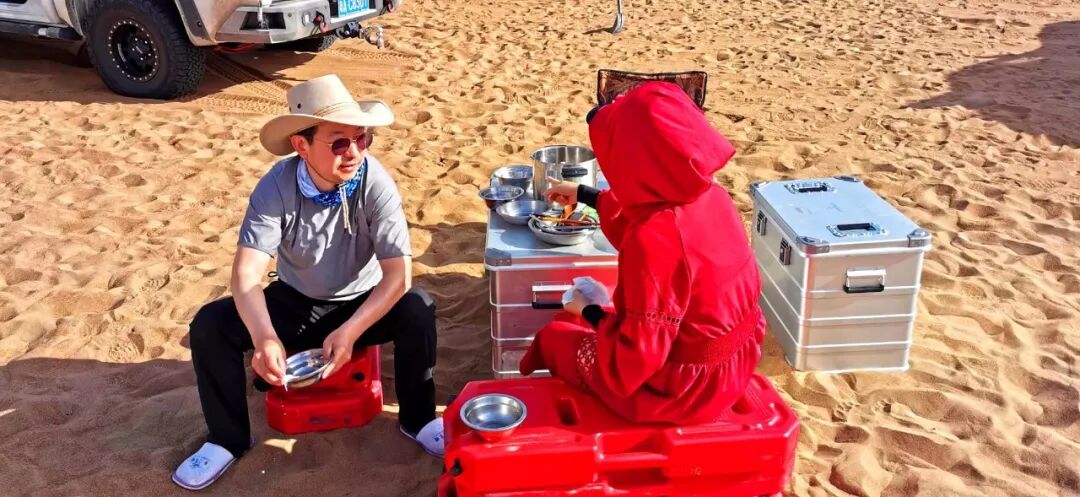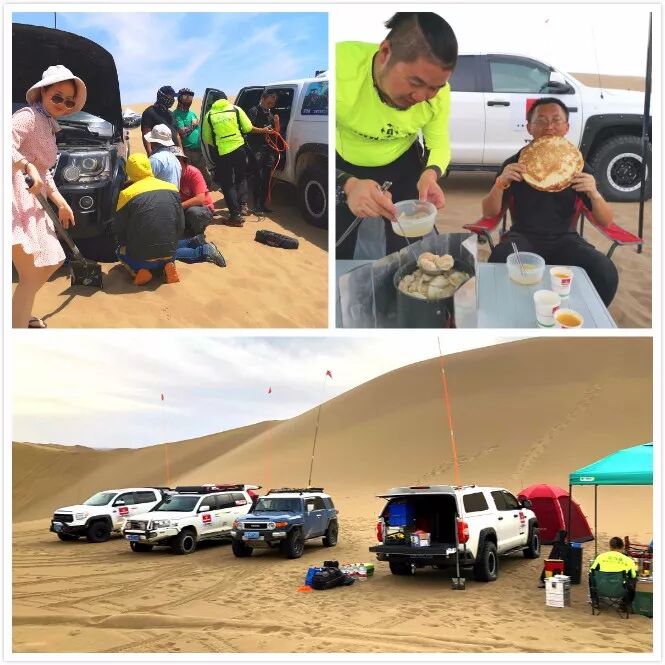 上午经过巴丹吉林沙漠落差最高的400米超级夺命断头坡。中午简单吃完饭后,大家原地休息了近两个多小时。