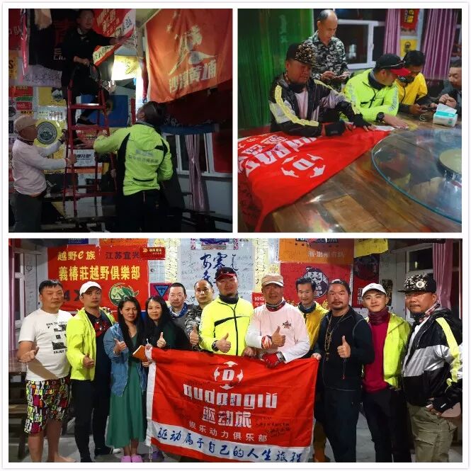车队下午5点顺利到达塔哥家,晚饭后大家在队旗上签名,挂在塔哥家留作纪念。屋顶、墙上全部都挂满了全国各地的越野俱乐部的队旗。今日行驶近100公里~