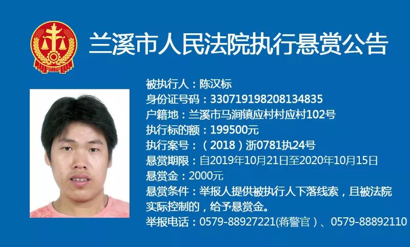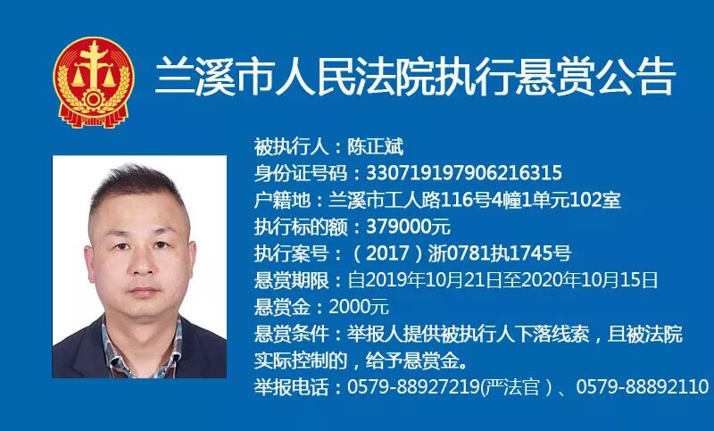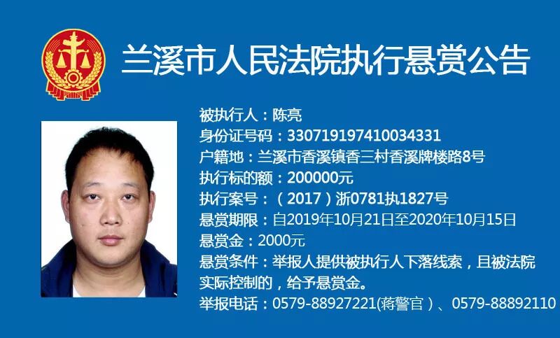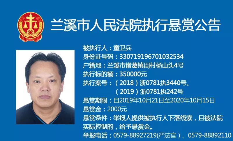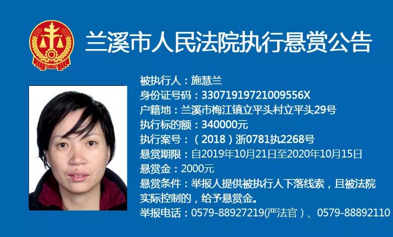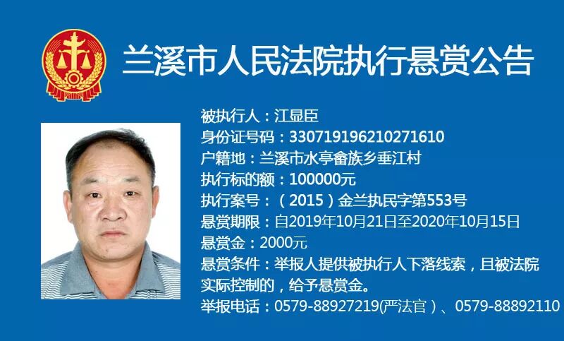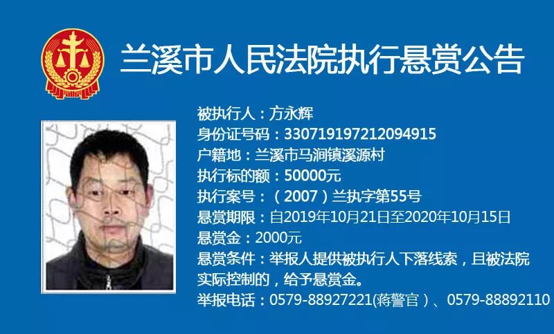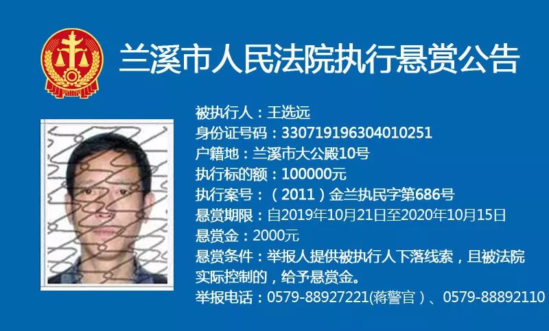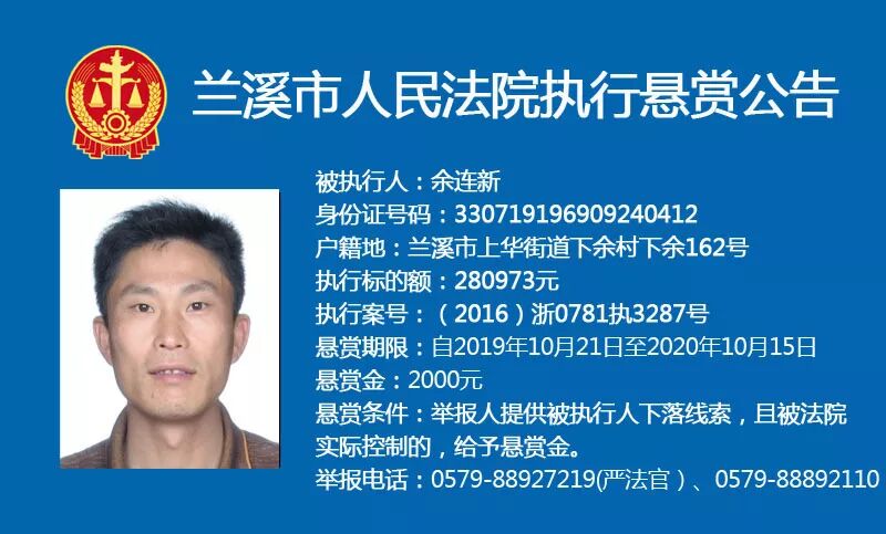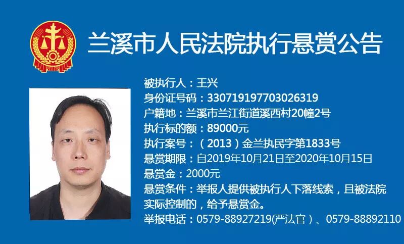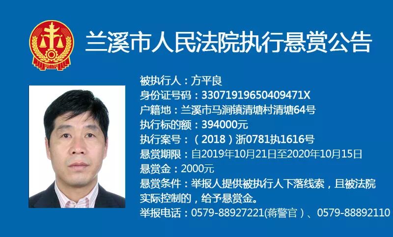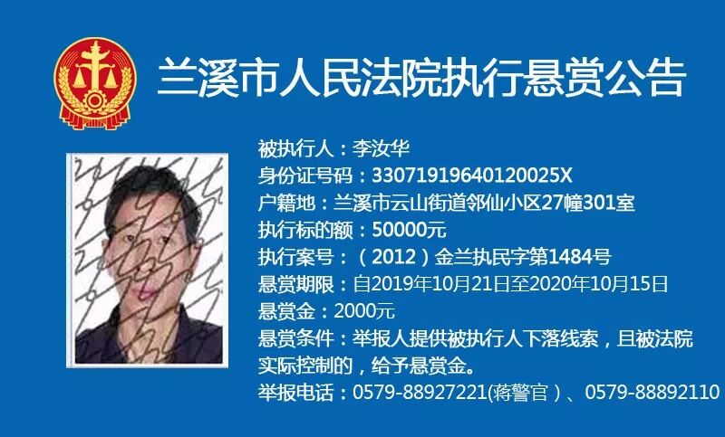 根据《中华人民共和国民事诉讼法》的有关规定和《最高人民法院关于民事执行中财产调查若干问题的规定》,兰溪市人民法院发布了关于执行赏金的通知。内部人向法院提供信息,并根据奖金公告领取奖金,奖金已由中国财产保险公司承保,并在法院监督下支付。兰溪市人民法院承诺对该信息保密。