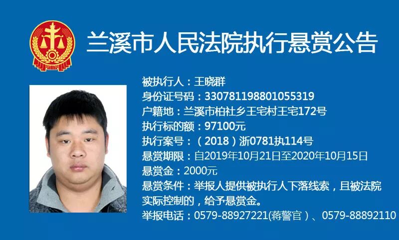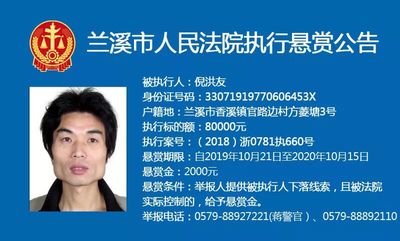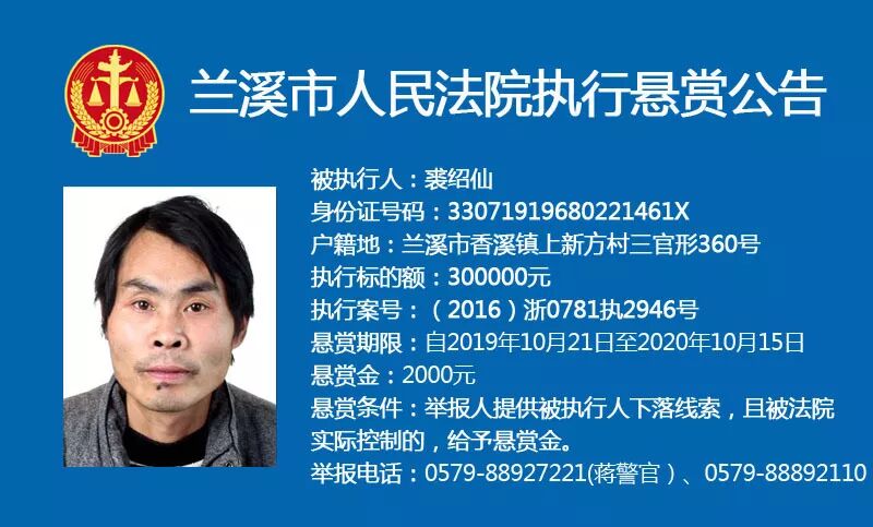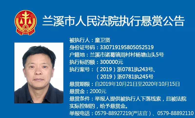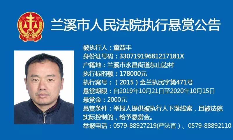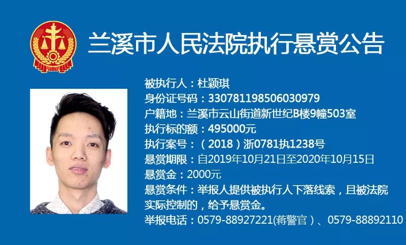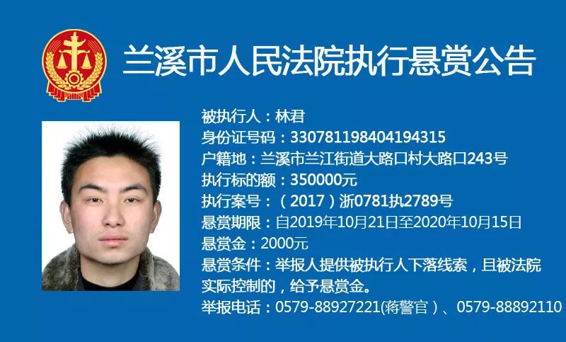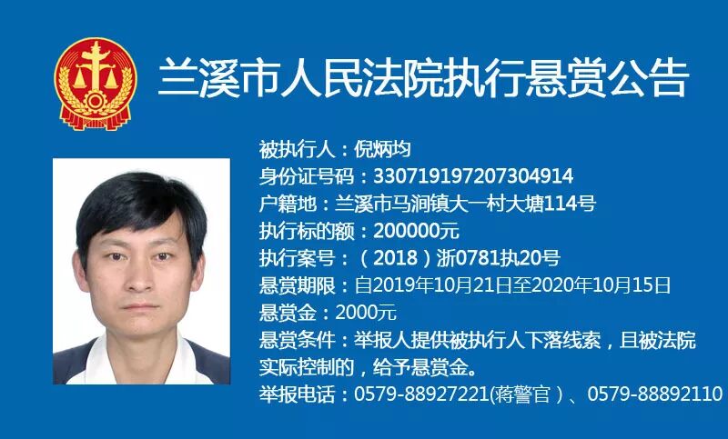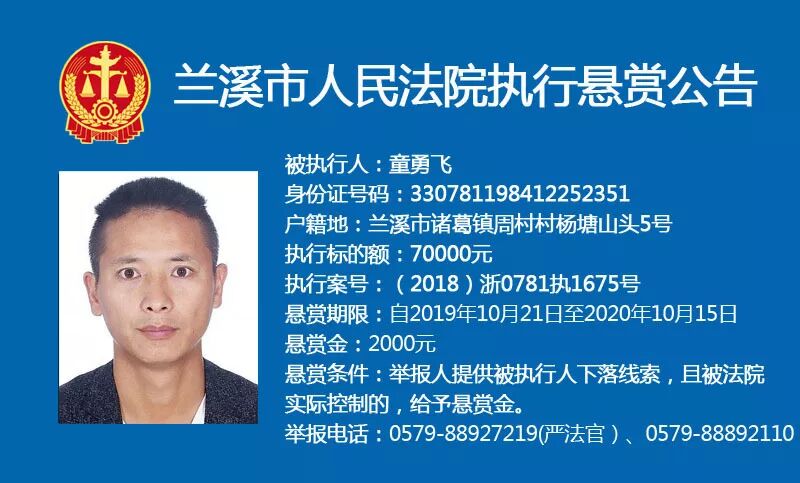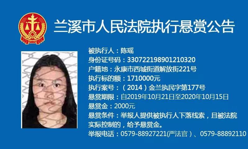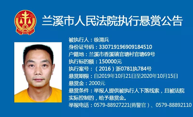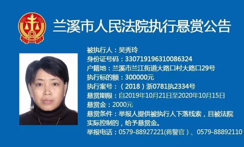 根据《中华人民共和国民事诉讼法》的有关规定和《最高人民法院关于民事执行中财产调查若干问题的规定》,兰溪市人民法院发布了关于执行赏金的通知。内部人向法院提供信息,并根据奖金公告领取奖金,奖金已由中国财产保险公司承保,并在法院监督下支付。兰溪市人民法院承诺对该信息保密。