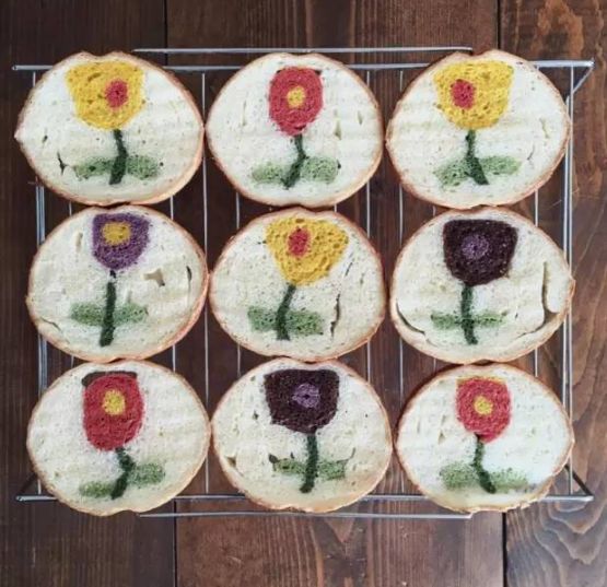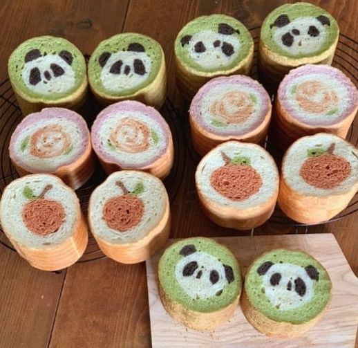 做这样的面包并不是一件简单的事情,揉制的面团在经过烘焙后体积会改变,所以很难把握图案的大小和位置,需要不断进行尝试~ 才能烘焙出好看的面包~每次面包的诞生都是背后无数次试验的结果。