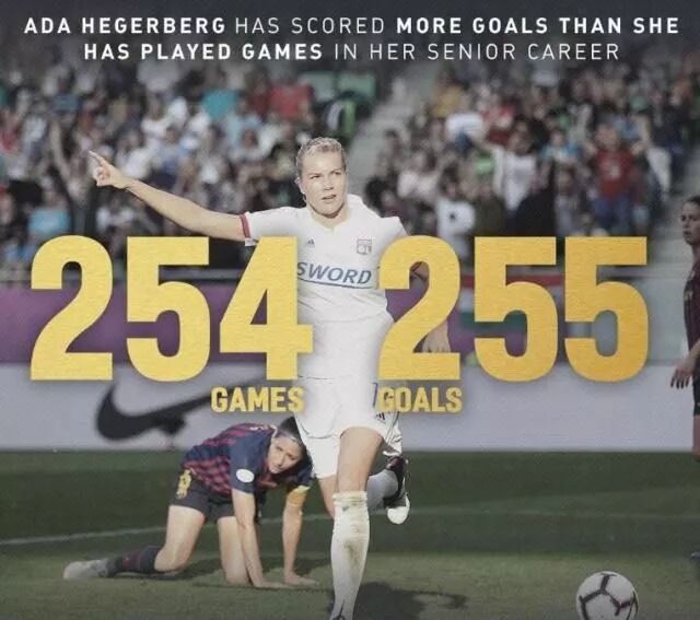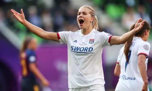 而这位1995年7月10日,出生于挪威,从2015-16赛季就开始崛起,效力于法甲里昂女足,而在当年(年仅19岁的她)就在当时的各条战线上,仅仅通过35次出场,就轰进了惊人的54粒进球。