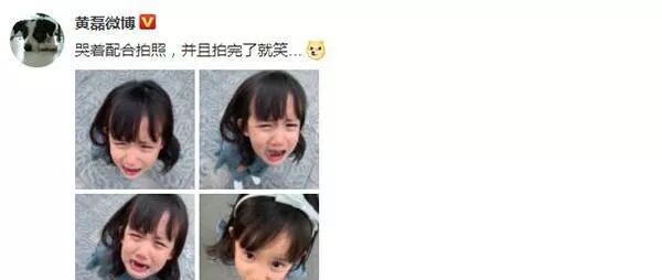 照片中,多妹抬头大哭,而爸爸黄磊则进行俯拍,虽然看着女儿哭得梨花带雨,但是黄磊一点都不心疼,完全就是一个人在找乐子。多妹哭的时候也不忘配合镜头,引得无数网友直呼多妹太可爱。