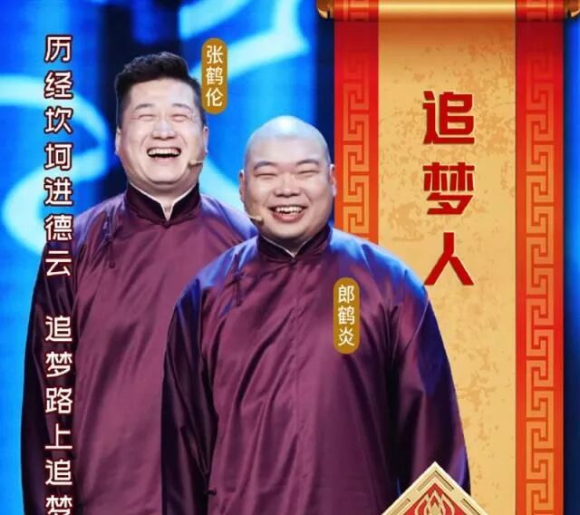 张鹤伦、郎鹤炎的相声《追梦人》是根据张鹤伦的真实故事改编的,主要是爆料他现场讲述自己“三进三出”德云社的经历。第一次到德云社面试,老郭问:“会什么呀?”张鹤伦道:“会唱二人转”,郭德纲特别开心,一挥手:“淘汰!宝贝儿,走错了,刘老根儿在旁边。”哈哈!欢笑中夹杂着艰辛、泪水和他对相声的执着,实力演绎一个年轻人的相声追梦之旅。