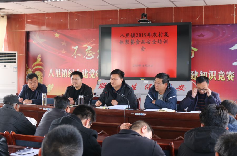 10月25日上午,八里镇召开非洲猪瘟防控工作推进会暨2019年农村集体聚餐食品安全培训会。镇党委、镇政府全体班子成员,镇食品药品监督管理所负责人及相关业务人员,镇畜牧兽医站负责人及相关业务人员,各村党支部书记,辖区部分养殖大户、餐饮企业负责人,共计62人参加会议。镇政府主要负责人主持会议。