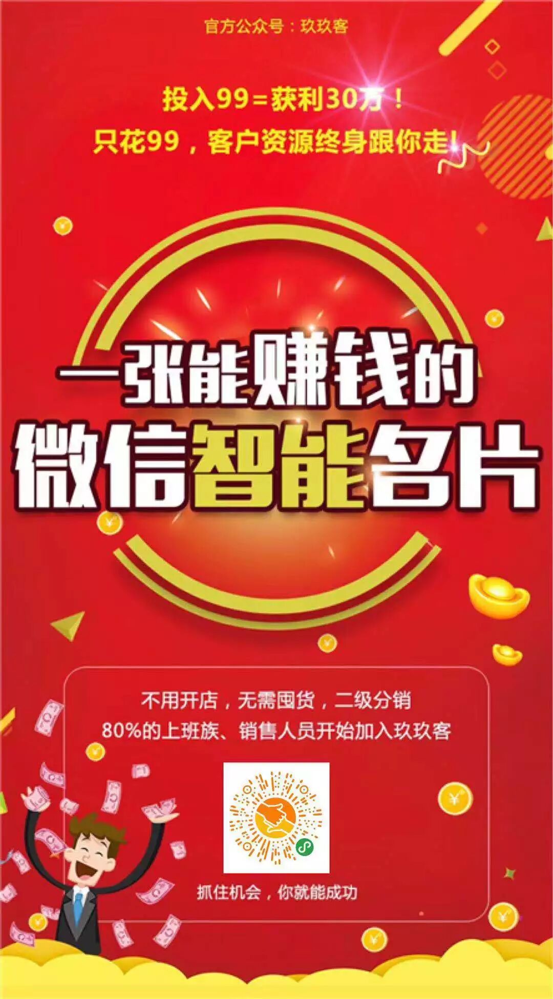 ![玖玖客AI名片小程序投资99=收入300000]()
