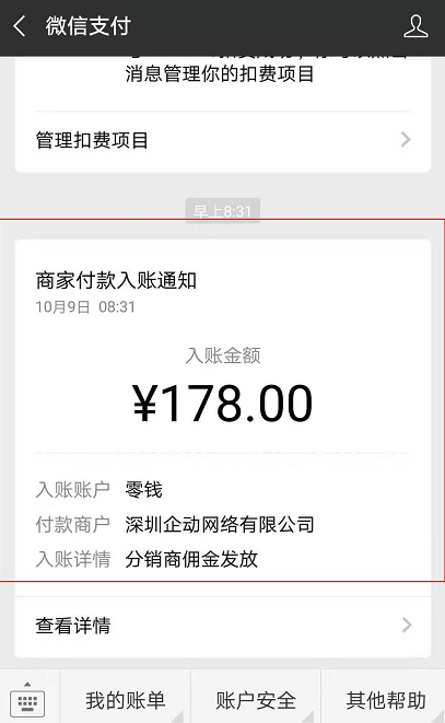 4:佣金提现秒到账。微信金钱入账声音不要太悦耳噢~