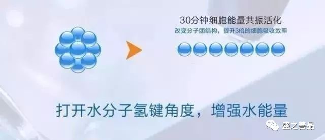 一排:水在舒曼谐振3分钟的作用下,水分子结构发生了改变,其氢键角由原来的104.5°变成114.5° ,H2O,氢键角即两个氢离子之间的夹角,这样的水呈直线排列可直达细胞,我们也叫细胞直饮水,带进营养带出细胞里的垃圾毒素,给细胞洗澡给身体排毒。初喝会越喝越干,因为我们大部分人都有“慢性脱水症“,细胞是长期缺水状态,并开始习惯。当赫兹功能水被迅速吸收,细胞复活被唤醒,开始提醒你要多喝水。