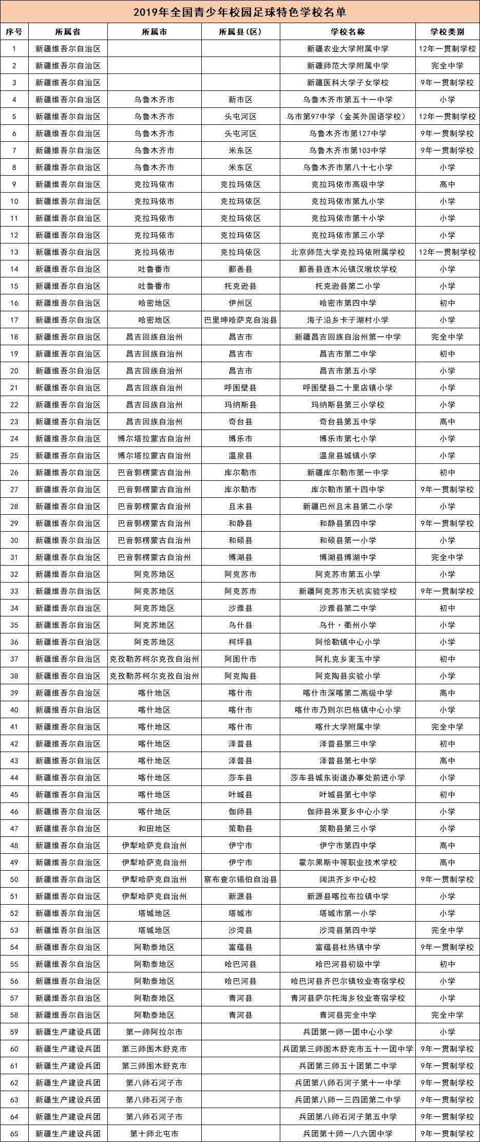 附件1:2019年全国青少年校园足球特色学校名单