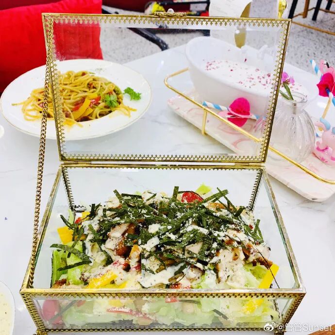 蜂蜜芥末籽鸡肉什锦沙拉女孩纸到这家一定要点这款沙拉,又是在首饰盒中放的美食,光是外表已经被攻陷而且沙拉分量十足~