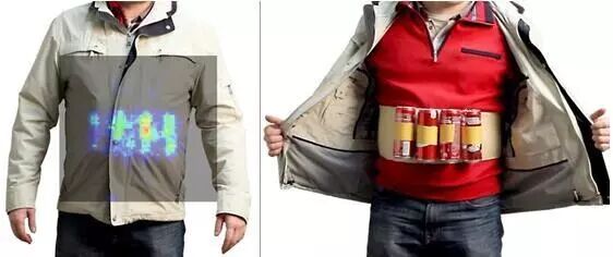 从某种角度讲,设备可以看做一台“热成像仪”– 能够检查隐匿物的“热成像仪” 。为了检查隐匿物,需要“温差”—室温与人体温度的温差,人与隐匿物的温差