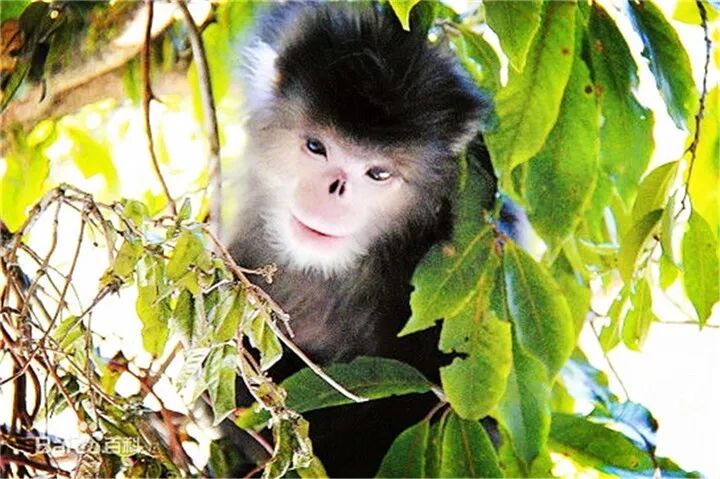 有趣的是,怒江金丝猴头顶有一撮细长而向前卷曲的黑色顶毛,好似特意为它修剪的“边幅”, 初一看好像孙悟空的造型。