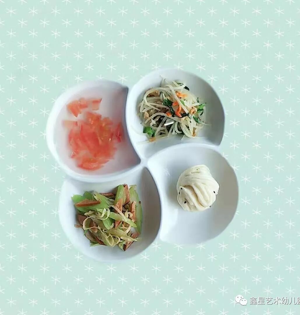 花卷、拌三丝、西芹俏豆油皮、西红柿汤