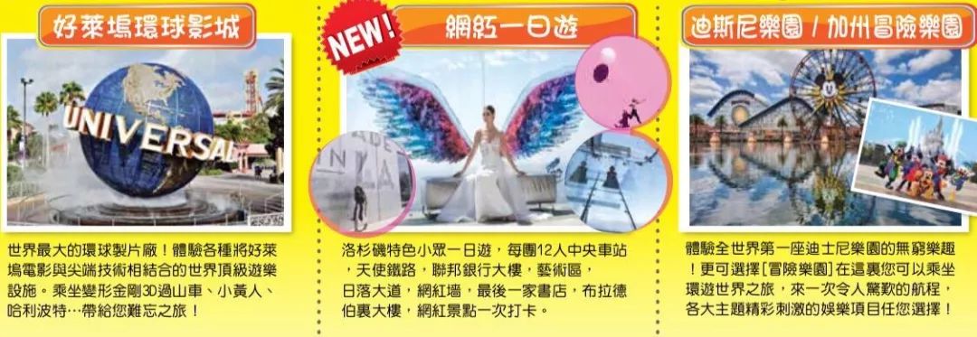 包括好莱坞、迪士尼等天天发团,含门票,洛杉矶市区集合上下车,持有门票者只需付车费...