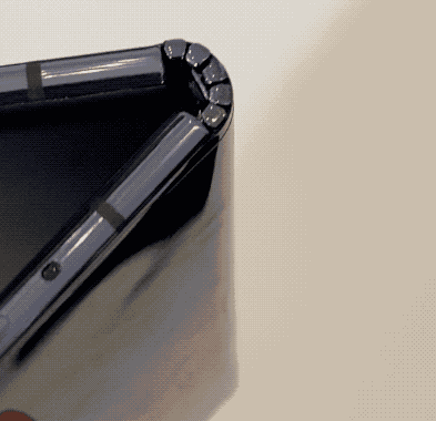 不仅如此,如果你仔细观察,可以发现在手机的整个展开过程中,铰链和屏幕之间的缝隙都小到可以忽略不计,这样做的好处是可以让手机在经历长期反复折叠后依然能够保持屏幕两端的平整,同时也避免了灰尘的进入。(当然防水就别想了……)