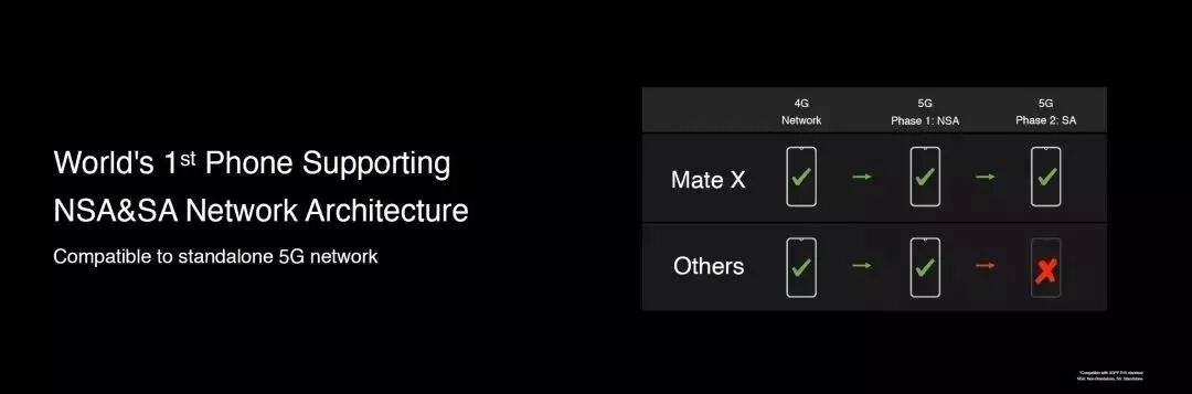 此外,华为Mate X 5G同时支持SA和NSA两种组网方式。