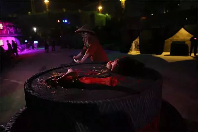 蛊村里还有很多非常逼真的血肉模糊的设计,令人颤栗。如果胆子够大的,不妨跟“鬼”合照,还有试一试这边的“鬼屋”。