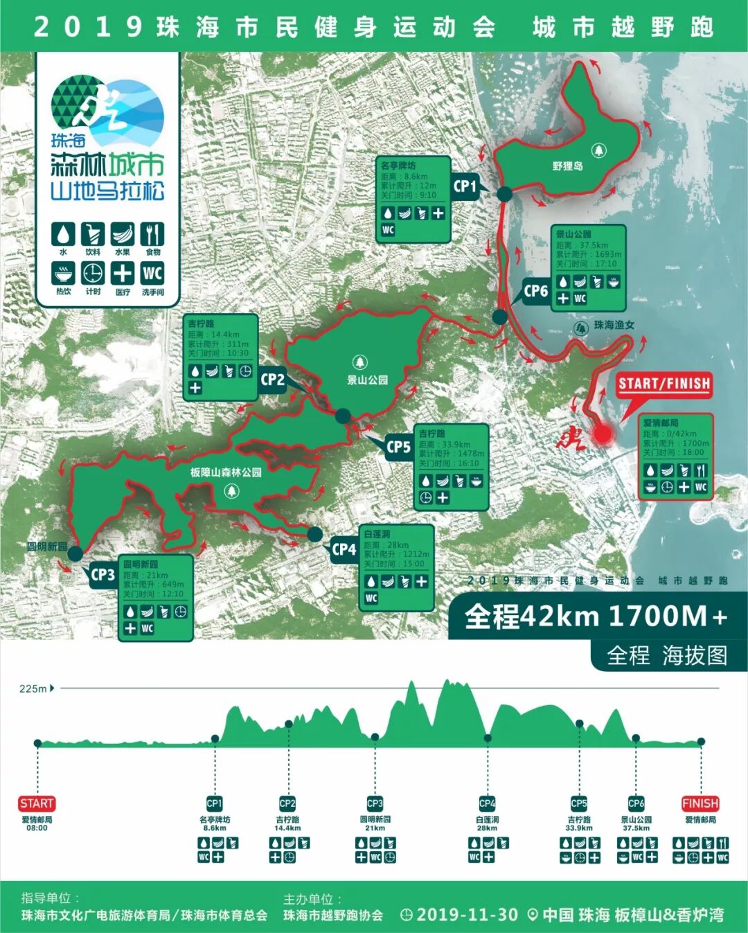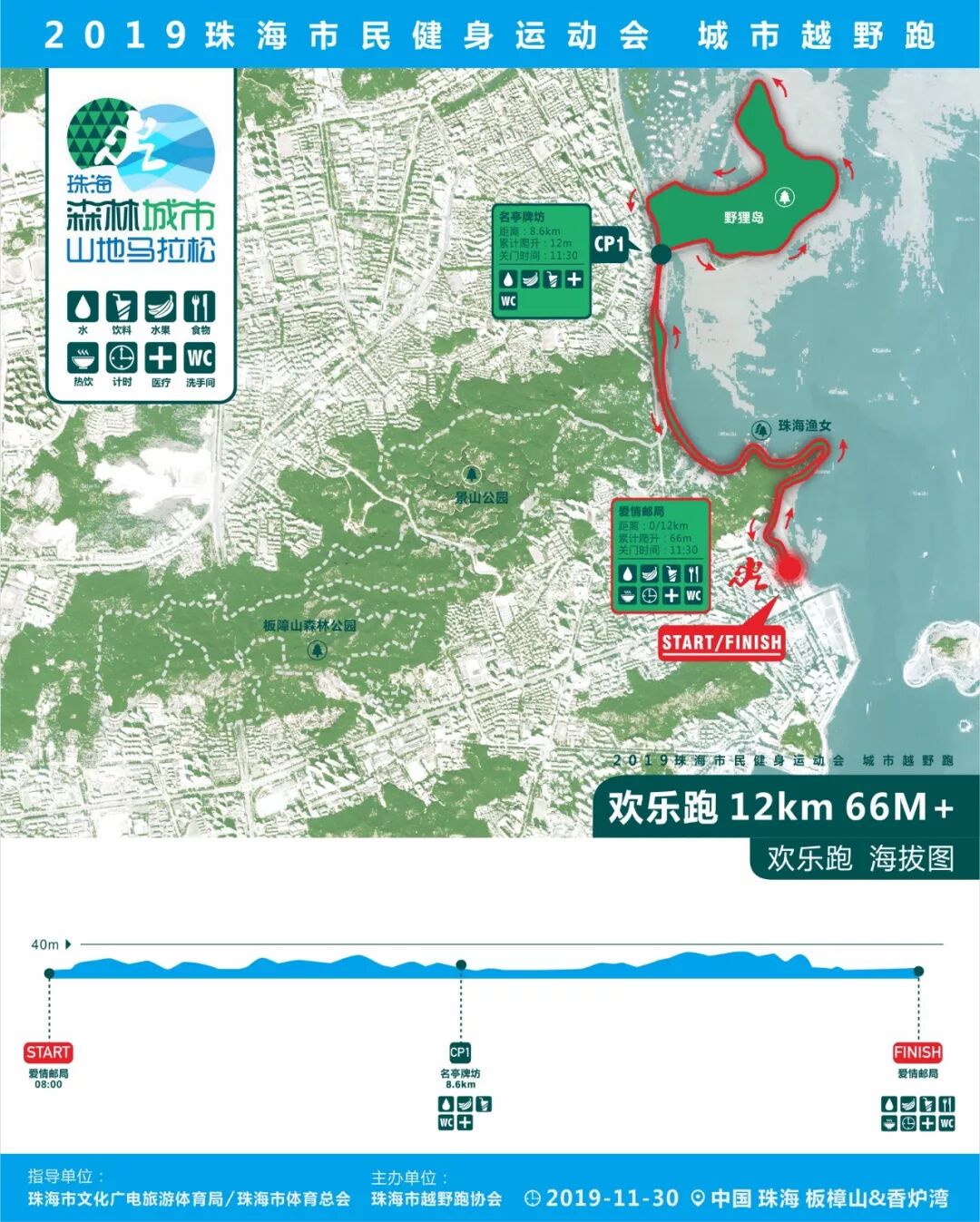 竞赛线路1.全程线路:爱情邮局-情侣中路-名亭牌坊-海燕桥-野狸岛-珠海歌剧院-新月桥-情侣中路-海滨南路-景山公园-吉柠路-板樟山森林公园-圆明新园-白莲洞公园-吉柠路-景山公园-海滨南路-情侣中路-爱情邮局