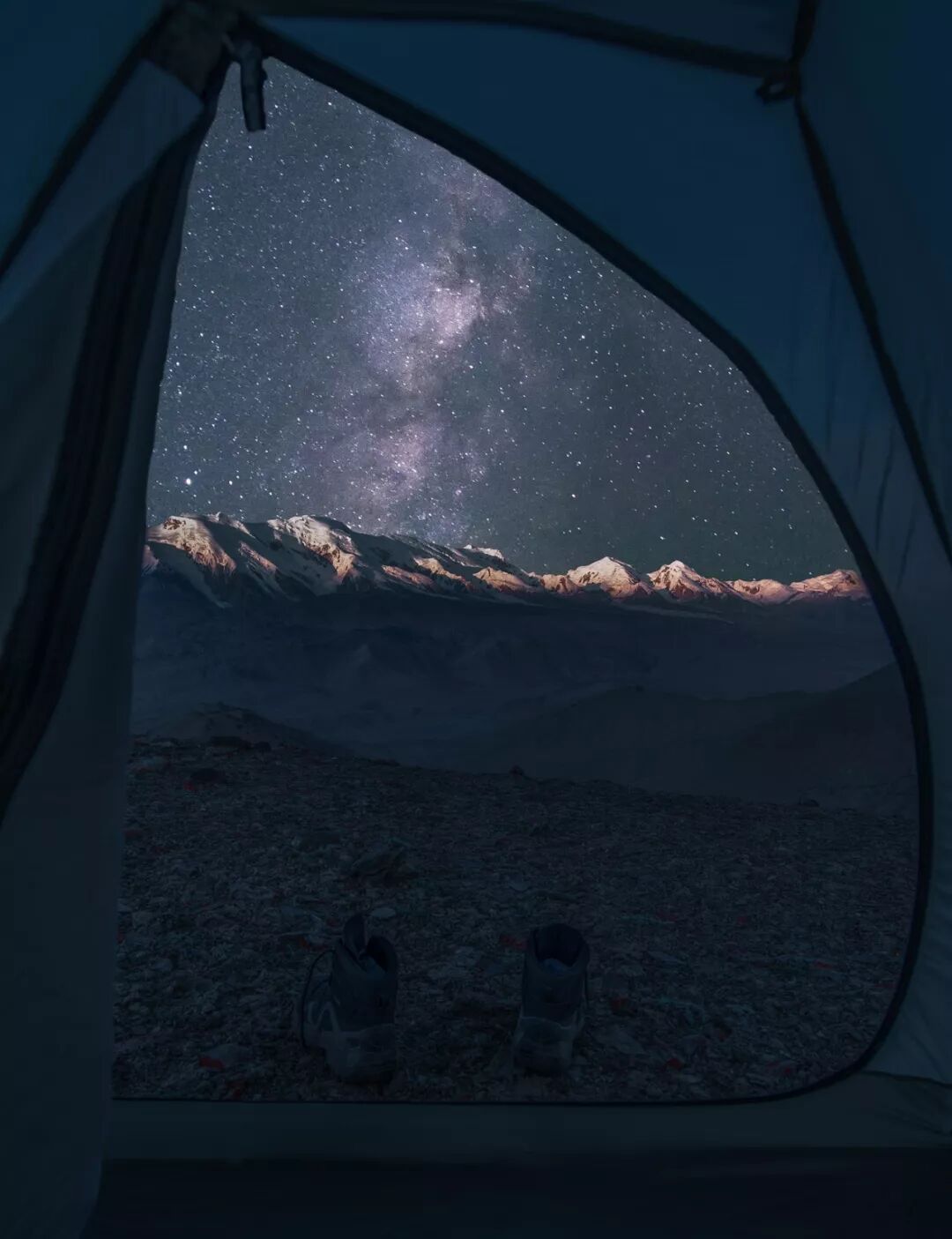 最后在GORE-TEX的行程赞助下慕士塔格峰才再次矗立在李宇眼前(夜色中的慕士塔格峰,其出行装备由GORE-TEX提供;2019,中国,慕士塔格峰,摄影师@李宇)▼