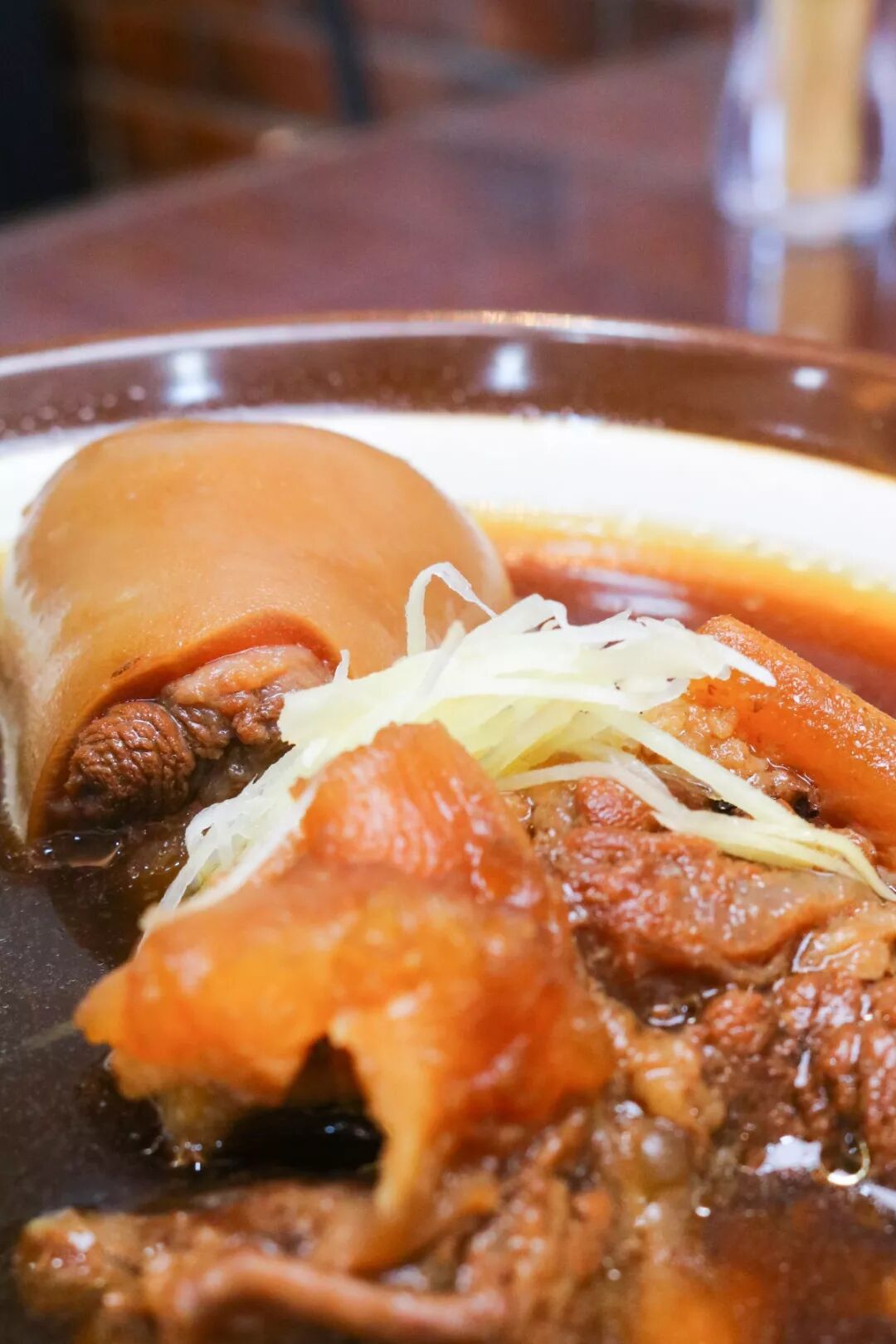 牛尾汤刚上桌时,热气氤氲,就连空气之中都飘散着浓浓的香气。不顾汤汁尚滚烫,微微一口吸入,汤汁的鲜润、清醇萦绕舌尖,仔细品尝还有淡淡的药膳味。
