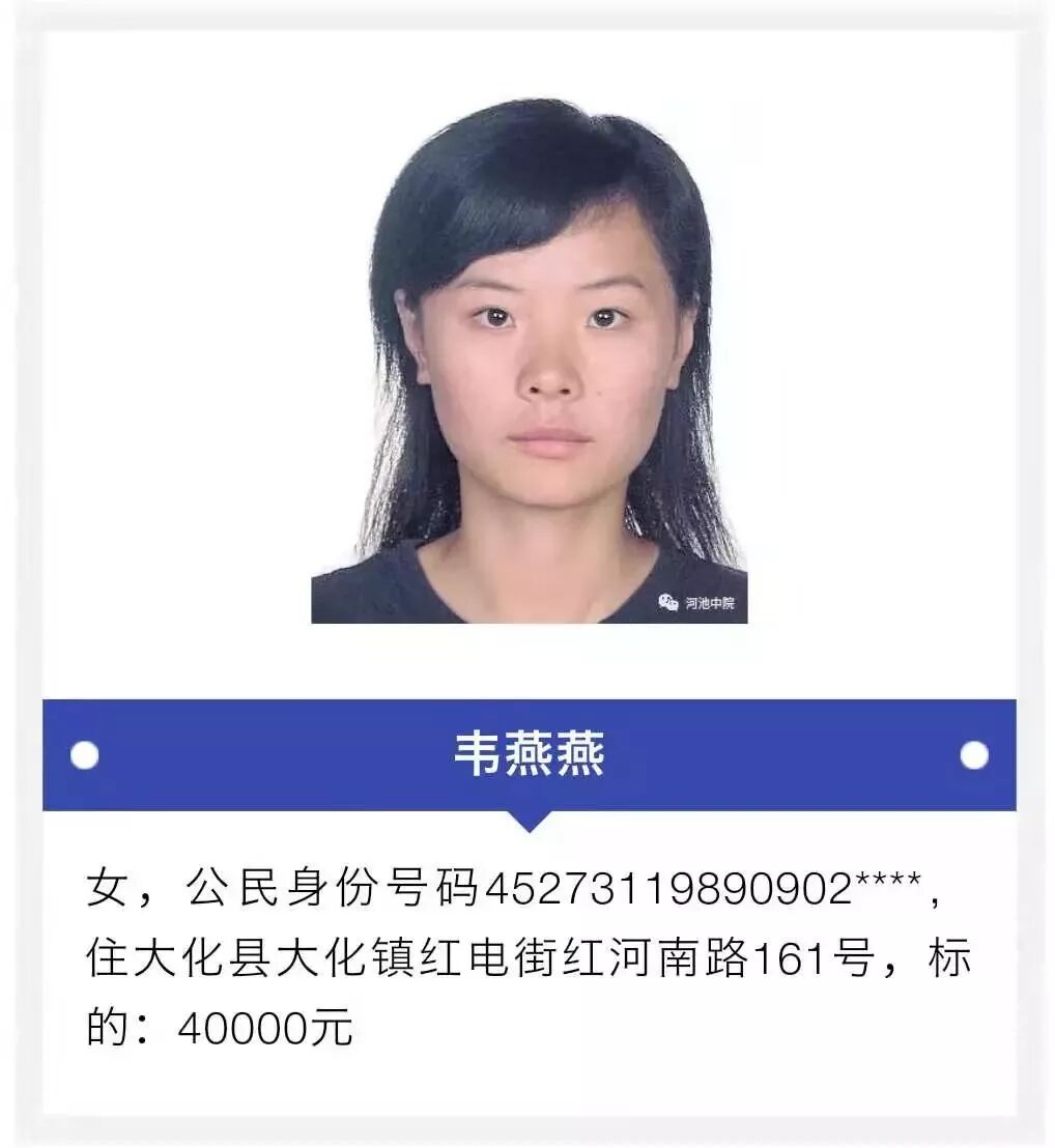 韦柳荣女,公民身份号码45273119810705****,住广西大化瑶族自治县贡川乡清坡村定伏屯10号,标的:34400 元